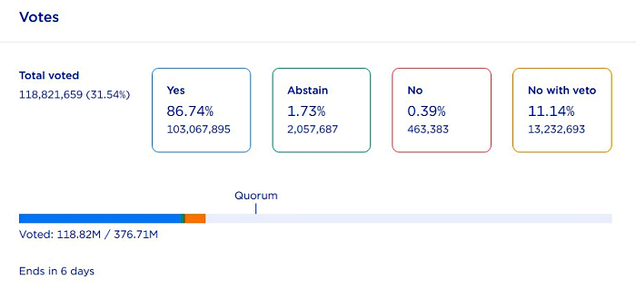 다만, 테라 생태계 복원 계획이 통과되려면 1억8800만표가 필요하다. 더불어 1~2% 이상의 의결권을 가진 주요 검증인들이 의사결정을 내리지 않은 것으로 알려졌다. 거부권 비율이 33.4%를 넘을 경우에도 (찬성표가 많아도) 제안은 통과되지 않는다.
