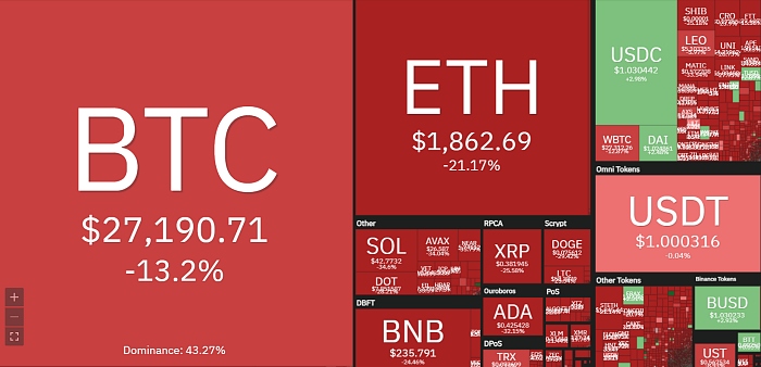 테라(UST)가 쏘아 올린 불신은 여전히 암호화폐 시장을 흔들고 있다. 미국 연준의 금리 인상, 인플레이션 등 제도권 금융 시장 침체 우려까지 겹치면서, 12일 오후 암호화폐 대장주 비트코인(BTC)은 2만7000달러 초반대로 추락했다. 이는 지난 코로나19 팬데믹이 한창이던 2020년 11월 말 가격 수준이다. 암호화폐 시장 전체가 2년 전 시장으로 후퇴한 격이다.