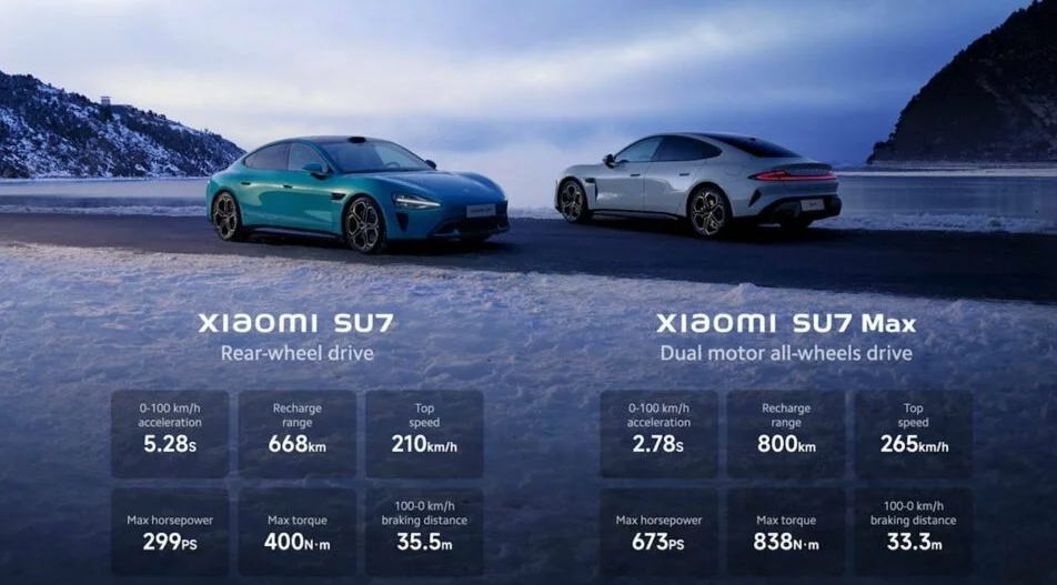 ※ 오토바이블에 게시된 샤오미 SU7 Max 기준 제원을 보면, 제로백은 2.78초(일반 SU7은 5.28초)이고 1회 충전시 주행거리는 800km, 최고 출력은 673마력으로 나타났다. 물론 실제 출시 후 성능은 기재된 숫자와 상이할 수 있다.
