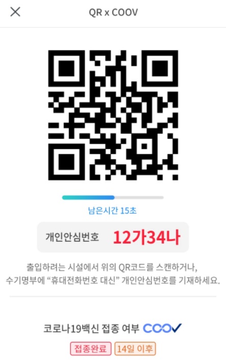 다중 이용시설을 출입하며 백신접종 여부를 확인 받아야 할 경우 패스 앱의 QR 출입증과 함께 해당 화면 하단에 노출되는 백신 접종 완료 여부 및 접종 기간(2주 이상 등)정보를 제시하면 된다.