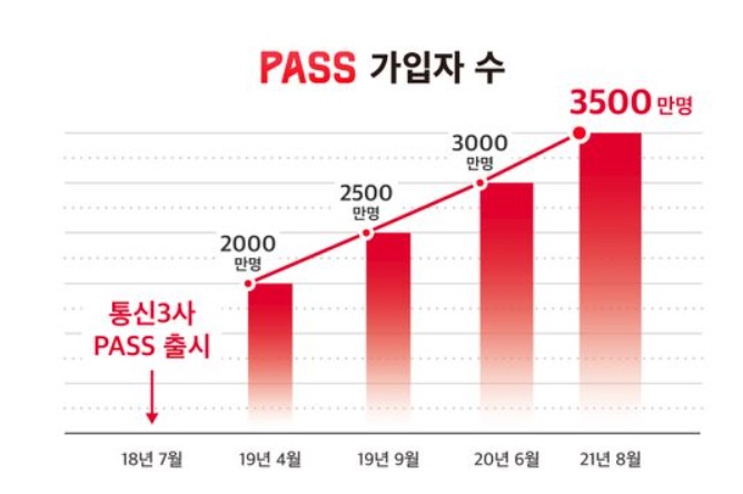 SK텔레콤 KT LG유플러스 통신3사는 ‘패스(PASS)’ 가입자가 3500만명을 돌파했다.