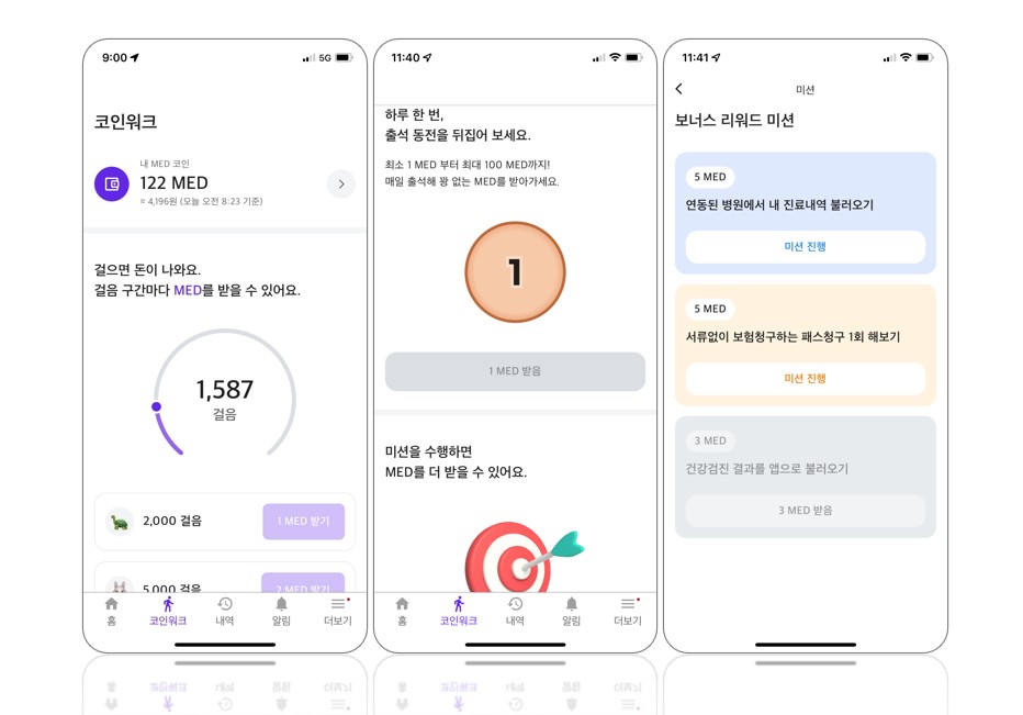 뒤늦게 사용하기 시작한 것도 있다. 바로 메디블록의 ‘코인워크’와 캐시워크의 ‘지니어트’다. 메디블록은 환자 중심 의료정보 플랫폼을 지향하는 디지털 헬스케어 스타트업이다. 개인건강기록 솔루션 메디패스 앱에 최근 ‘코인워크’라는 서비스를 선보였다. 걸음 수에 따라 메디블록의 가상자산인 MED를 받을 수 있다.
