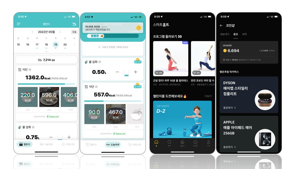 이 외에도 카카오VX의 스마트홈트도 운동을 하면 VX코인을 준다. 앱 내 운동 영상이나 프로그램을 선택, 운동하면 되고, 인공지능(AI)이 자세를 봐주기 때문에 효율적인 운동이 가능하다. 스마트홈트의 1VX는 카카오게임즈 자회사인 메타보라의 1BORA와 같다. 현재 기자가 받은 6.694VX코인은 3148원과 같은 가치로 나타난다.