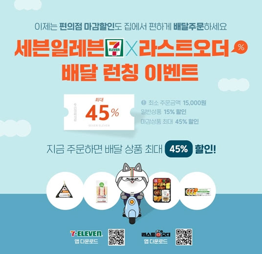 마감할인상품 거래 서비스 라스트오더는 오는 10월 1일부터 세븐일레븐 편의점 상품 배달 서비스를 새롭게 선보인다고 30일 밝혔다.