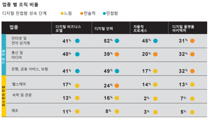 디지털 민첩함 성숙 단계를 보면 인터넷 및 전자상거래 등 전통적인 디지털 산업군이 더 높게 나타나고 있다. (이미지=워크데이)