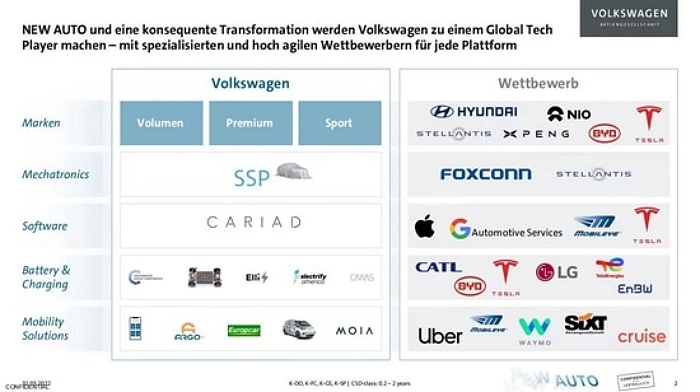 헤르베르트 디스 폭스바겐 회장은 "뉴 오토 전략을 통해 우리의 경쟁사는 더이상 메르세데스-벤츠나 토요타, 포드 같은 기업이 아니다. 테슬라, 폭스콘, 애플, LG전자, 우버 등이 우리의 새로운 경쟁사"라고 언급했다.