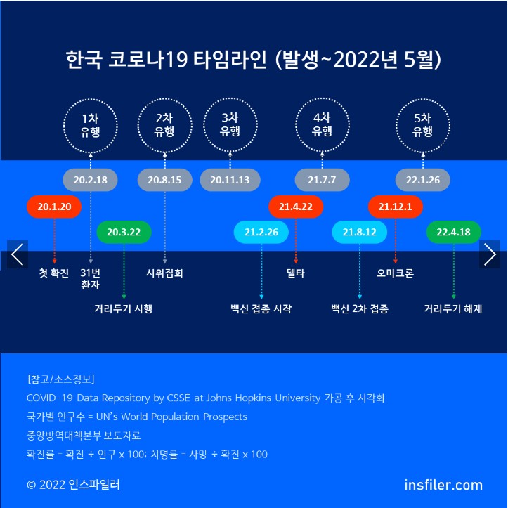 다섯 차례의 대유행을 거쳐 2022년 4월 18일에 사회적 거리두기가 해제되었습니다.