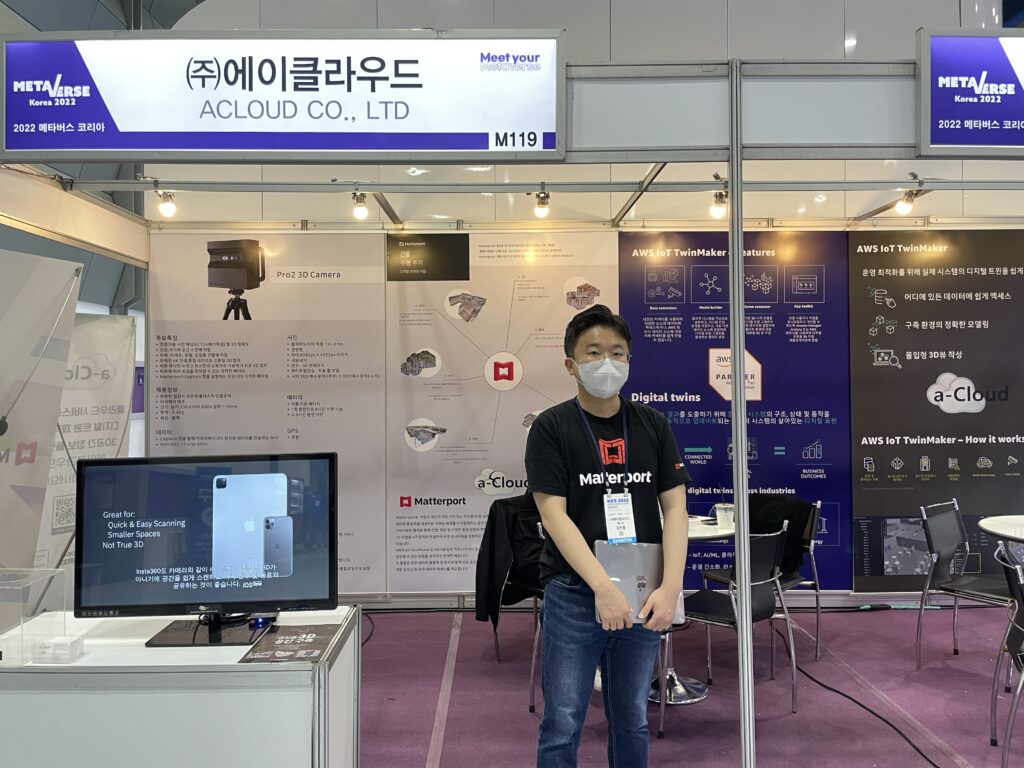 AWS 클라우드 매니지 서비스를 비롯 다양한 클라우드 서비스를 제공하는 에이클라우드는 이날 행사에서 3차원 공간 정보 플랫폼 ‘매터포트(Matterport)’를 선보여 주목을 끌었다. 매터포트는 실제 장소 및 물체를 디지털 복사본으로 제작해 주는 서비스를 제공하며 2021년 미국 나스닥에 사장된 바 있다.