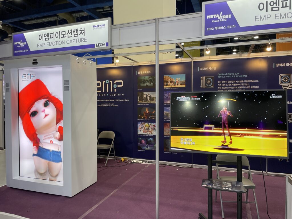 사람의 움직임을 감지해 3D 모델링을 구성하는 모션캡쳐 기술은 이미 애니메이션, 게임, 일러스트 등 다양한 분야에서 활용되고 있다. 이엠피이모션캡쳐는 이런 모션캡쳐 기술을 활용해 컨텐츠를 제작하는 분야에서 강자로 자리 잡은 기업이며 이날 행사에서 자사가 이룬 성과와 기술력을 자랑했다.