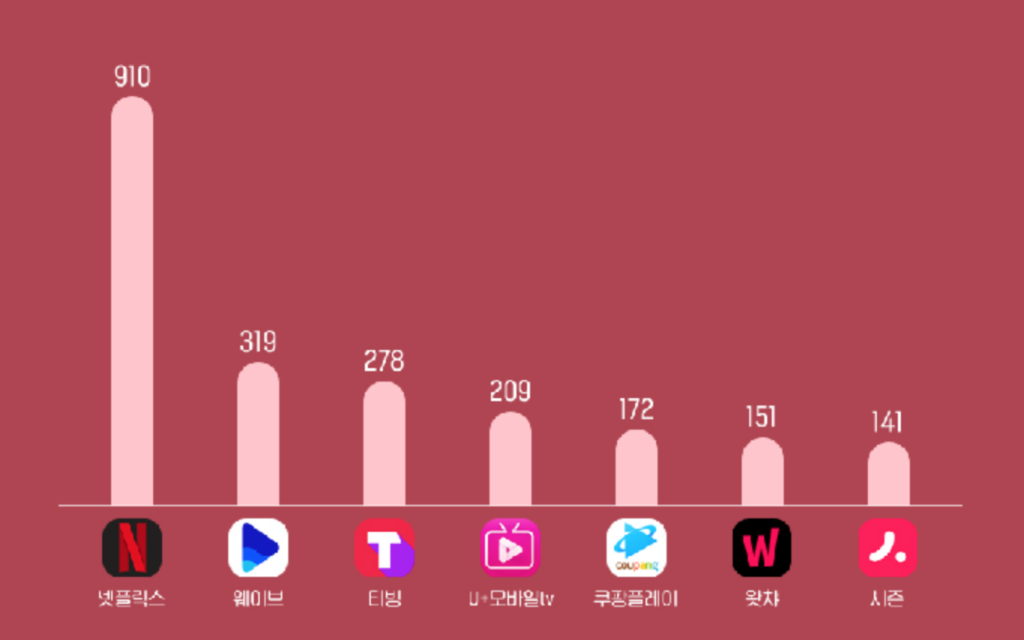 한국투자증권에 따르면 넷플릭스는 올해 한국 콘텐츠 투자액을 5500억원까지 증액할 계획이다. 지난해보다 65% 늘어난 규모다. 이 같은 투자는 비단 한국 구독자를 위한 투자가 아닌, 한국 콘텐츠가 글로벌 시장에서 통할 것이라는 분석에 기반한다. 물론 국내 넷플릭스 결제액 역시 1조원을 상회해 이미 투자 대비 금액 회수는 된 상황이다.