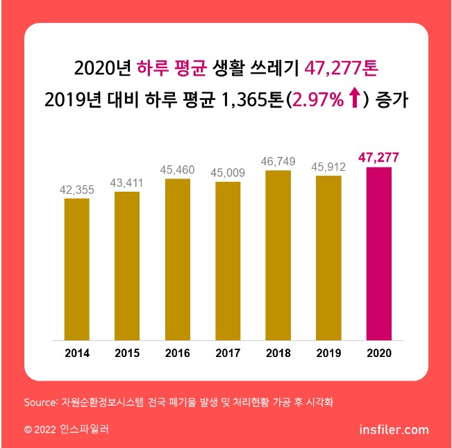 2020년 하루 평균 생활 쓰레기 배출량은 47,277톤,