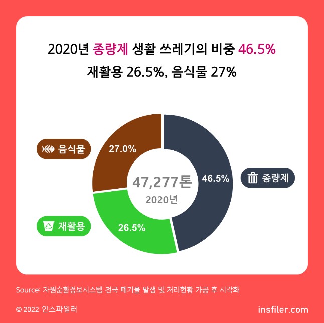 이 중 종량제 생활 쓰레기의 비중은 46.5% 거의 절반수준이며,