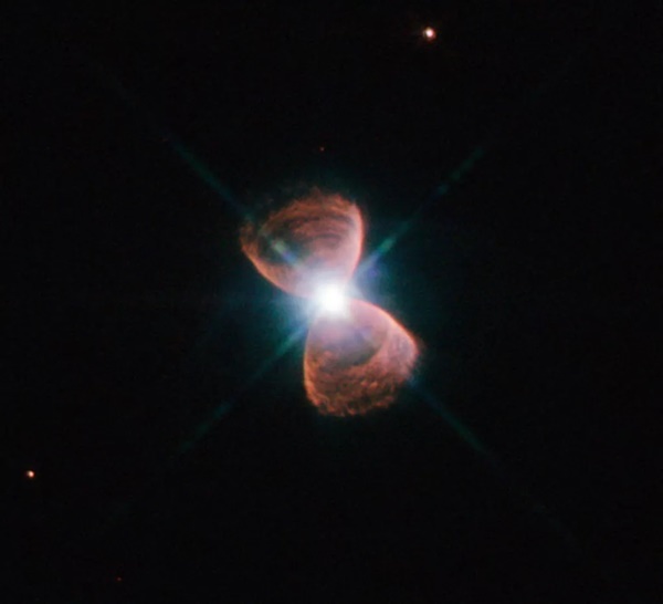 이 사진은 ‘쌍극성 행성모양 성운’의 예를 보여준다. 허블 12로 알려져 있고 ‘PN G111.8-02.8’로 목록화돼 있는 이 천체는 카시오페이아 자리에 있다. 나비나 모래시계를 연상케 하는 이 성운의 놀라운 모양은 태양과 같은 별이 수명을 다해 주변 공간으로 바깥층을 뿜어내면서 형성됐다. 쌍극성 성운의 경우 이 물질은 노화된 별의 극 쪽으로 흘러들어가 독특한 이중 돌출 구조를 형성한다.