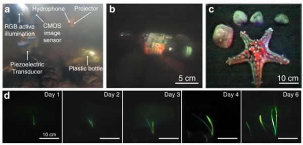그들은 또한 아프리카 불가사리의 고품질 사진을 찍을 수 있었다. 불가사리 팔을 따라 보이는 작은 결절을 선명하게 확인할 수 있었다. 이 장치는 또한 일주일 동안 어두운 환경에서 수중 외떡잎식물(아포노게톤 울바세우스)을 반복적으로 촬영해 성장을 관찰하는 데 효과적이었다.
