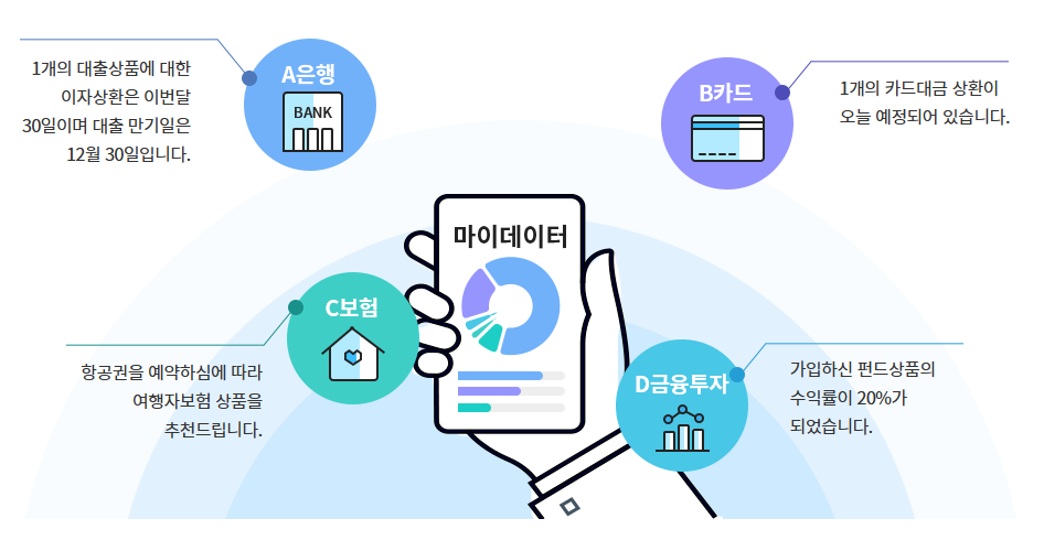 앞서 마이데이터 제도 시행 이전, 기존의 개인정보 활용 방식은 대부분 기업의 필요에 따라 이뤄졌다. 마케팅이나 제휴 서비스를 위한 정보 제공 동의가 대표적 사례다. 기업들은 자신이 보유한 데이터를 경쟁력으로 인식했기 때문에, 외부와의 공유는 꺼려왔다. 그 결과 정보는 폐쇄적으로 운영됐고, 기업 간 데이터 유통이 막히면서 서비스 혁신도 제한됐다.