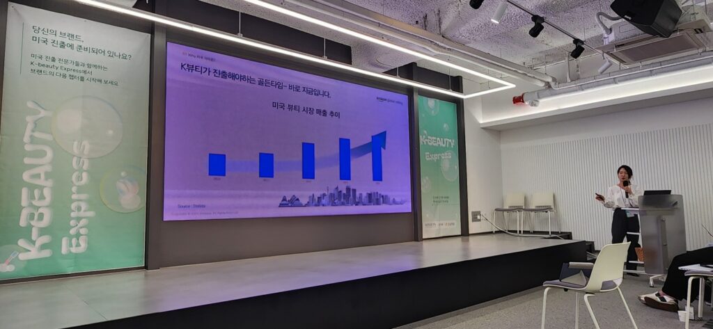 김 매니저는 “2020년부터 2024년까지 미국 뷰티 시장은 100% 이상 성장했고, 이 안에서 아마존이 전체 온라인 유통의 45%를 점유, 압도적인 1위를 하고 있다”며 “지금이야 말로 한국 브랜드가 진출해야 할 골든타임”이라고 말했다.
