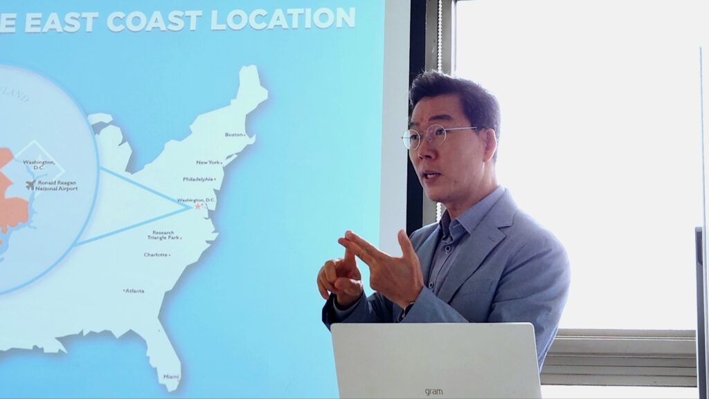 이날 발표에 나선 김광섭 대표는 2005년 페어팩스 카운티 경제개발청 서울 사무소 대표 업무를 시작한 이래 20년 넘게 한국의 테크 기업들(스타트업 및 중소기업 위주)의 미국 동부 시장 진출을 지원해 오고 있다. 최근에는 한국을 넘어 아시아 대표로서 일본, 싱가포르, 대만, 말레이시아 등 아시아 기업들을 대상으로 활동 영역을 넓히는 중이다.