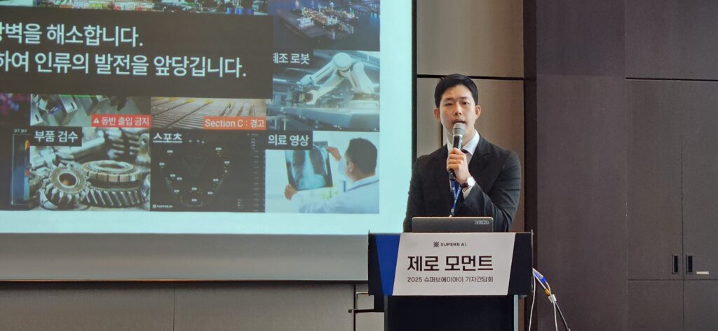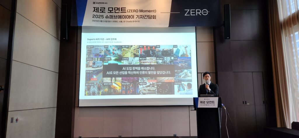 24일 서울 여의도 콘래드 호텔에서 열린 기자간담회를 통해 슈퍼브AI는 ‘제로’의 기술적 성과와 비즈니스 전략을 상세히 소개하고, 산업 전반의 AI 도입 장벽을 근본적으로 해소하겠다는 비전을 제시했다.