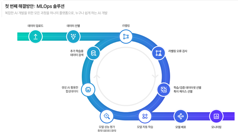 “AI를 개발할 때는 당연히 전문가가 필요합니다. 하지만 절대적으로 그 수가 부족하기도 하고 처음 AI를 도입하는 기업, 기존 전통 산업 분야의 경우 AI 개발자를 채용하기 굉장히 어렵습니다. 또 양질의 학습 데이터가 필요한데, AI를 처음 도입하는 기업 입장에서 양질의 데이터를 보유하고 있을 가능성도 낮죠. 기술적 인프라 역시 GPU와 같은 컴퓨팅 자원부터 시작해 데이터를 관리하거나 선별하는 소프트웨어 등에도 비용이 적잖이 필요하고요. 저희는 이런 현실적인 장벽을 허물기 위해 앞서 첫 번째 해결책으로 ML옵스 솔루션을 통해 복잡하고 긴 AI 개발 과정을 효율화, 간편화하는데 노력해 왔죠.”