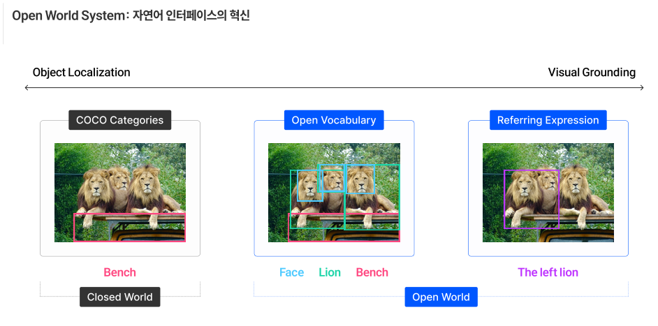 먼저 제로샷(Zero-shot) 추론 방식이다. 이는 미리 학습되지 않은 새로운 환경이나 사물 등 처음 보는 객체라도 사전 학습된 정보만으로 인식할 수 있다. AI 도입 시 기업이 겪는 복잡한 데이터 수집이나 모델 재학습의 부담을 크게 줄어든 것이다. 두 번째, 오픈 월드 시스템과 관련해 차 CTO는 “인터페이스의 혁신”이라 했다. 단어를 기반으로 특정 위치나 사물을 인식(Open Vocabulary)하고, 더 나아가 자연어 텍스트에 맞게 사물을 찾는(Referring Expression) 기술이다. 다음 멀티모달(Multi-modal) 프롬프트 기반 사용 방식을 통해 텍스트 명령이나 이미지, 객체 등 다양한 형태의 입력만으로 즉시 작동할 수 있게 했다. 이는 산업 현장에서 변화하는 니즈에 따라 손쉽게 AI가 수행하는 업무를 조절할 수 있는 인터페이스를 제공한다는 점에서 의미가 크다.