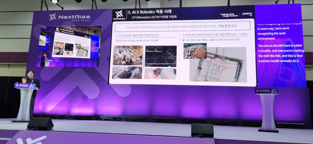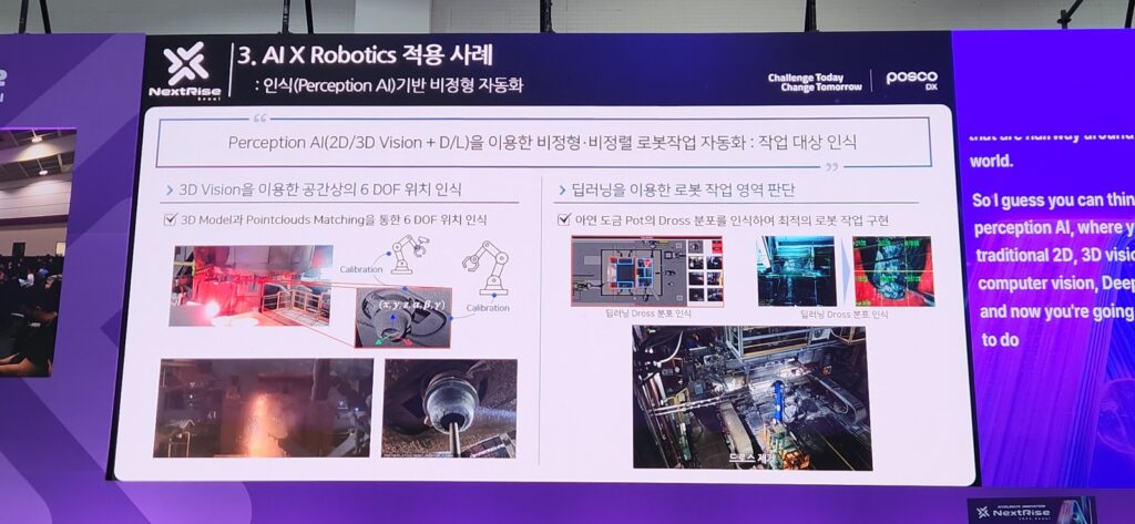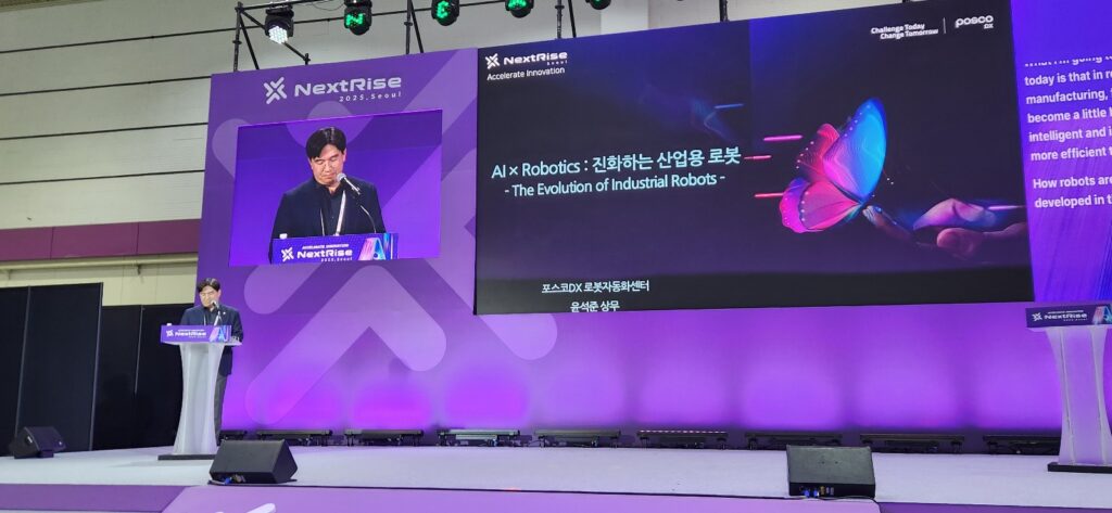 행사 첫날 ‘Rise Stage’에서 진행된 다양한 강연 중에서도 포스코DX의 AI 기반 로봇 자동화를 책임지고 있는 윤석준 포스코DX 로봇자동화센터장(상무)의 발표는 그 과정과 적용 사례를 확인할 수 있는 시간이었다.
