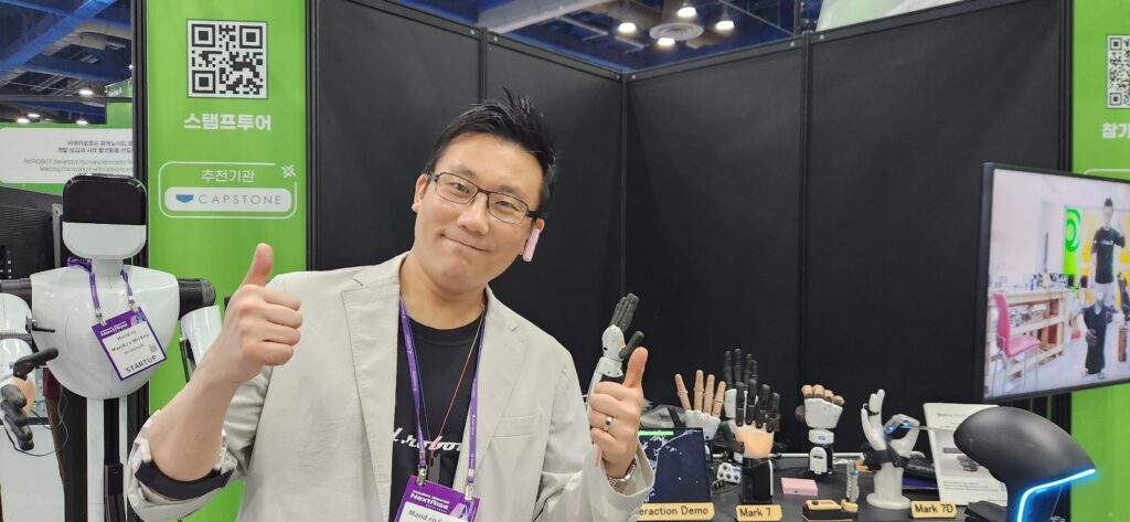 현장에서 만난 이 대표는 “지난 10년 간 다양한 절단 장애 유형에 맞는 전자 의수를 개발해 왔다”며 최근 휴머노이드 분야에서 주목 받는 이유에 대해 설명을 이어갔다.