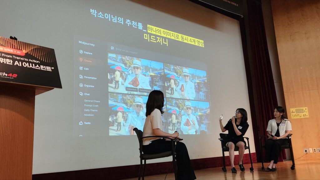 이날 패널토론 참석자들이 이구동성으로 언급하는, 실제 업무에 AI를 도입했을 때 가장 크게 느껴지는 변화는 ‘효율’이었다. 오 디렉터는 “예전엔 브랜드 기획에 디자이너, 카피라이터, 마케터 등 여러 인력이 들어갔지만, 지금은 챗GPT와 미드저니로 대부분의 기획을 혼자 소화할 수 있게 됐다”며 “AI로 작업 시간이 굉장히 줄고 있다”고 밝혔다.