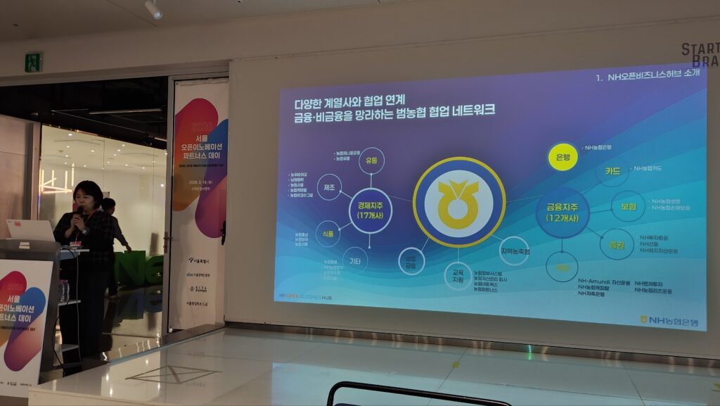이날 금융권 발표에서는 계열사 연계와 사업화 구조가 핵심으로 떠올랐다. 먼저 NH농협 우주희 차장은 NH오픈비즈니스허브의 가장 큰 차별점으로 ‘범농협 네트워크’를 들었다. 우 차장은 “은행, 카드, 보험, 증권뿐 아니라 유통, 식품, 제조 계열사까지 협업 수요처가 될 수 있어 금융과 비금융을 함께 엮는 구조가 가능하다”고 설명했다.