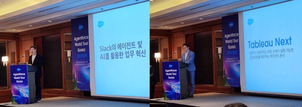 한편 이날 간담회는 김 아키텍트의 에이전트포스와 관련된 발표에 이어 ‘슬랙의 에이전트 및 AI를 활용한 업무 혁신’을 주제로한 송혁 솔루션 엔지니어의 발표, 김동균 솔루션 엔지니어 리드의 ‘Tableau Next’를 주제로 한 발표가 진행됐다.
