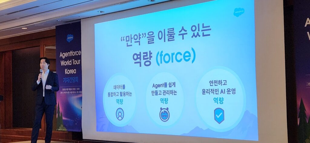 한편 이날 발표 말미, 손 대표는 AI 주권 및 데이터 역외 유출 방지의 중요성을 언급하며 “올해 3분기 중 한국 고객을 위해 한국 데이터센터 기반의 데이터 클라우드 에이전트포스 플랫폼 서비스를 시작할 예정”이라며, 그에 대한 전략적 투자를 발표하기도 했다.