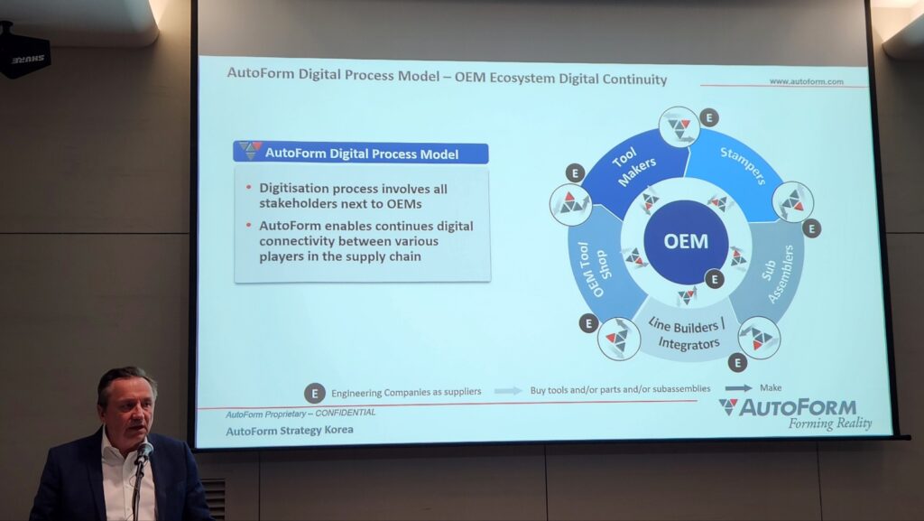 스위스에서 출발한 금형 시뮬레이션 소프트웨어 기업 오토폼엔지니어링(이하 오토폼)이 한국 제조업의 구조적 전환을 겨냥한 전략을 공개했다. 한국을 방문해 직접 발표에 나선 올리비에 르퇴르트르 오토폼엔지니어링 CEO. (사진=테크42)