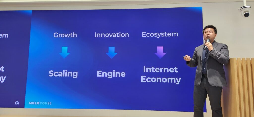 안 대표는 올해 몰로코의 미래 비전 키워드로 ‘Scaling’ ‘Engine’ ‘Internet Economy’를 소개했다. (사진=테크42)