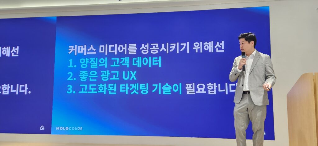“우리는 데이터를 어떻게 분석하고 AI로 최적화하느냐에 따라 광고의 성패가 갈린다고 믿습니다. 실제로 국내 상위 20대 커머스 중 12개 이상이 몰로코를 통해 수익화를 이루고 있고, 이들이 입점 셀러들과 함께 성장하는 에코시스템을 만들고 있습니다.”