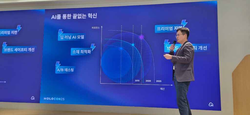 안 대표의 뒤를 이어 마이크를 잡은 것은 몰로코의 공동 창업자이자 기술 비전을 이끌고 있는 전동환 CTO였다. 전 CTO는 “몰로코는 모바일 앱 광고 생태계의 성장성과 복잡성을 일찍이 포착했고, 실시간 경매 기반 광고 시장에서 AI의 필요성을 누구보다 먼저 인식했다”며 지난 시간 동안 몰로코가 집중해온 기술 개발의 여정을 소개했다.