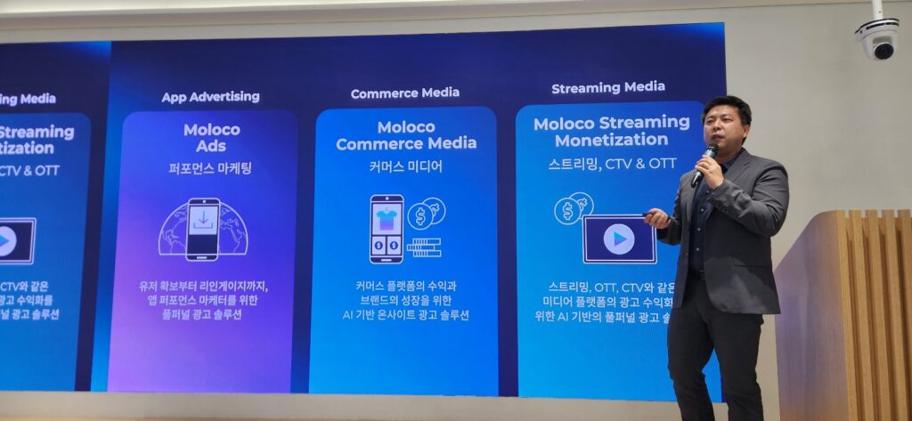 실제 몰로코는 AI 기반 광고 플랫폼 ‘몰로코 애즈’에 이어, 커머스 미디어와 스트리밍 머니타이제이션 영역으로 사업을 확장했다. 안 대표는 “몰로코 전체 매출의 90% 이상이 글로벌에서 나오는 상황”이라면서도 쿠팡이츠, 컬리, 무신사 등 국내 주요 커머스 역시 몰로코 솔루션을 도입해 매출 증대와 수익성 개선 효과를 보고 있는 상황을 언급하기도 했다.