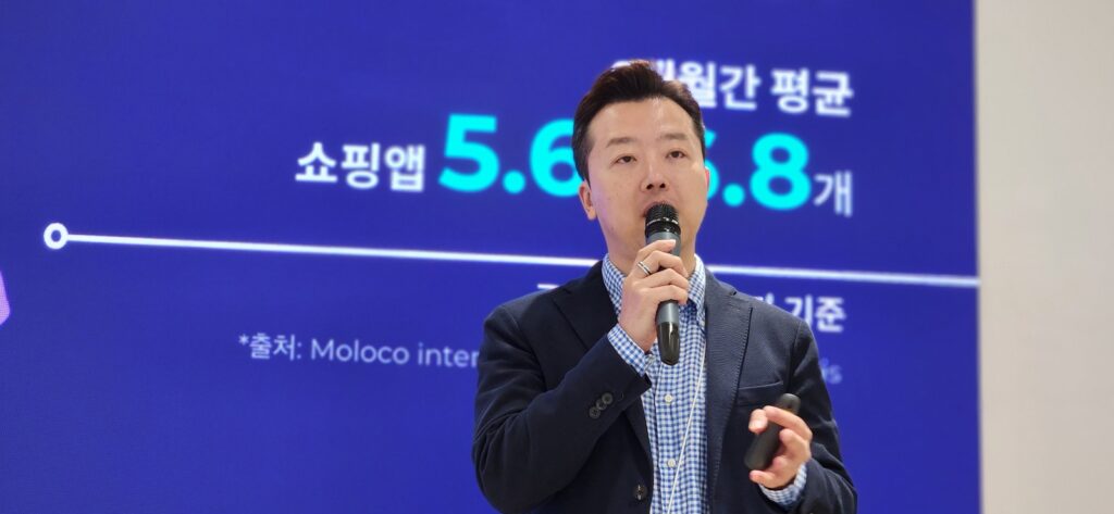 이어 마이크를 잡은 안재균 몰로코 한국 지사장은 파편화된 유저 여정 속에서 '풀 라이프사이클 마케팅'의 중요성을 강조하며, 몰로코가 가진 플랫폼의 강점을 소개했다. 안 지사장은 "하루 평균 10개 이상의 앱을 사용하는 현대 유저들의 여정을 한 번에 공략하려면, 통합 데이터 기반의 AI 솔루션이 필수"라며 말을 이어갔다.