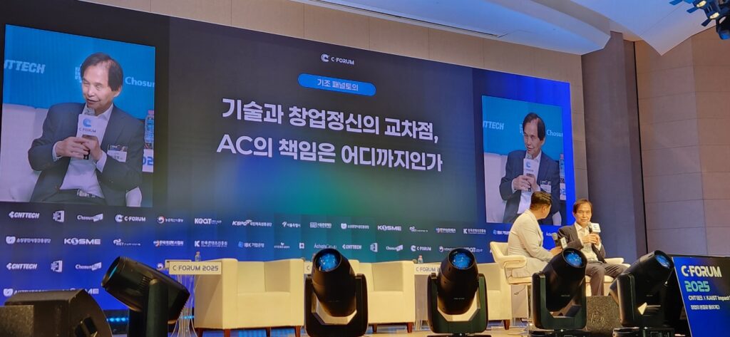 이에 따라 오프닝 세션에서는 이광형 카이스트 총장과 전화성 씨엔티테크 대표가 ‘기술과 창업정신의 교차점, 액셀러레이터(AC)의 책임은 어디까지인가’를 주제로 기조 패널토론을 진행했다.