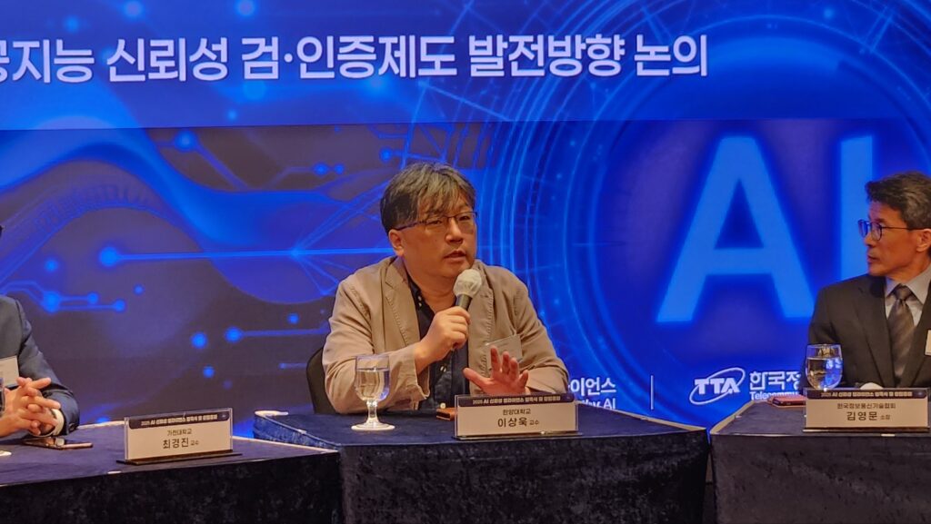 윤상민 국민대 교수(인증·교육 분과장)는 AI 신뢰성에 대한 인식 전환이 필요하다고 강조했다. (사진=테크42)