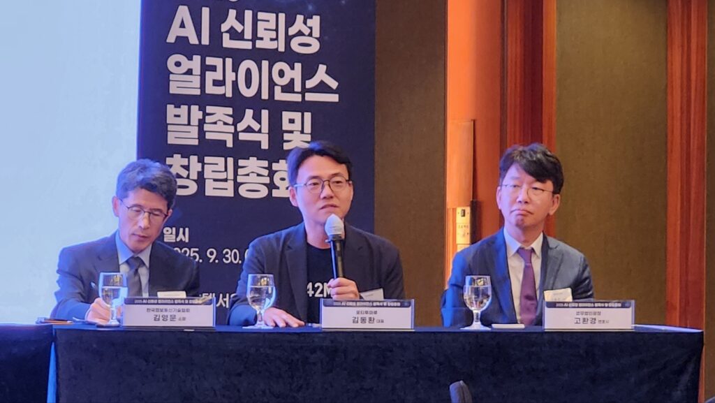 산업계 대표로 참여한 김동환 포티투마루 대표(가운데)는 인증 제도의 현실성과 구체적 혜택을 강조했다. (사진=테크42)