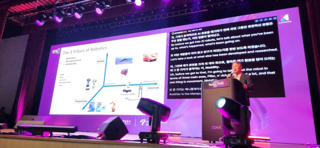 이렇듯 AI 기술을 둘러싼 국내·외의 빠른 환경 변화와 기술 진화의 방향, 글로벌 트렌드를 조망하는 자리가 지난달 개최된 ‘테크콘 2025’였다. 세계적인 AI 석학과 글로벌 기업의 기술 리더들이 대거 연사로 참여한 이번 행사에서 테크42는 세계적인 로봇 공학자 여준구 박사를 비롯해 브릴스의 전진 대표, 휴머노이드 로봇 전문가인 한재권 한양대 교수의 이야기에 주목했다.