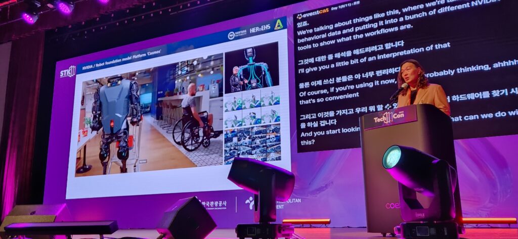한편 이날 키노트에서 여 박사는 “생성형 AI, 에이전트 AI에 이어, 물리 세계에서 활동하는 ‘피지컬 AI’가 곧 산업 혁명의 핵심 키워드가 될 것”이라고 전망했다. 그러면서 “AI는 강력한 지능을 갖고 있지만, 물리적 세계에서 행동하려면 로봇이라는 몸체가 필요하다”며 “피지컬 AI의 핵심은 로봇이며, 이는 단지 휴머노이드를 의미하는 것이 아니라, AI가 물리적으로 개입하는 모든 장치를 포괄하는 개념”이라고 설명했다.