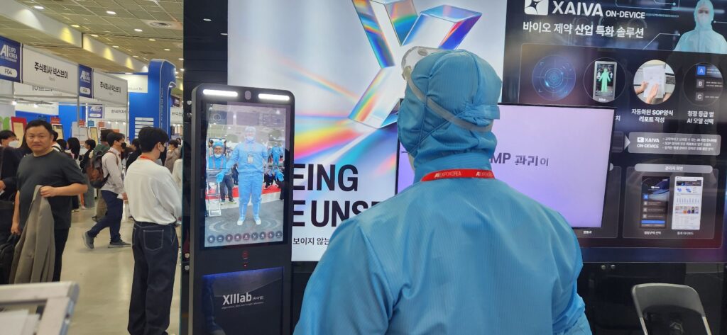 이날 현장에 직접 위생복을 입고 등장해 시연을 선보인 김태연 씨이랩 리더는 “기존 관제 솔루션을 넘어 제약과 제조 분야에 특화된 맞춤형 AI 솔루션으로 확장 중”이라며 엑스아이바 온디바이스 제품의 특징을 설명했다.