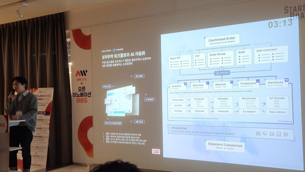 발표 말미, 신 대표는 시장성과 사업 모델도 함께 내세웠다. 특히 시제가 의류 제조 산업 내에서 특히 주문자상표부착생산(Original Equipment Manufacturing, OEM) 기반 공급망에 맞춰 솔루션을 설계했다는 점을 차별점으로 강조했다. 소프트웨어 구독뿐 아니라 AI 플러그인, 사물인터넷(IoT) 디바이스 판매, 현장 통합·최적화 서비스까지 묶어 고객 맞춤형으로 공급할 수 있다는 설명이다.