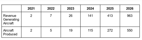 당초 2024년 말까지 생산하기로 한 조비의 eVTOL 항공기 생산 물량은 엄청났지만 실제로 관할 관청에 보고한 생산 계획은 기껏 연간 10대(~2024)에서 24대 수준(~2025)으로 크게 부족하다(공급 부족)는 것.