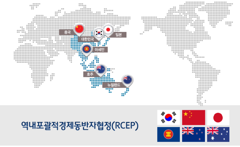 이달부터 메가 FTA로 불리는 RCEP가 발효됐다. 이를 통해 기존 FTA 대비 자동차·부품 철강  등 주력 상품과 온라인게임, 애니메이션, 영화, 음반 등  서비스 시장의 개방이 확대되며 우리나라 기업들에게는 기회로 작용할 전망이다. (이미지=RCEP 홈페이지)
