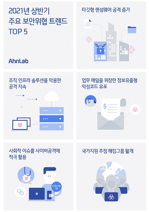 안랩이 2021년 상반기 주요 보안 위협 트렌드 5가지를 선정해 발표했다.