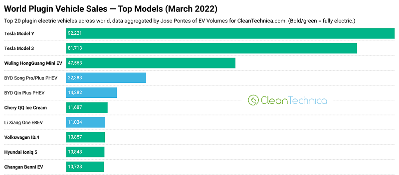 2022년 3월, 전 세계 전기차 판매량 순위