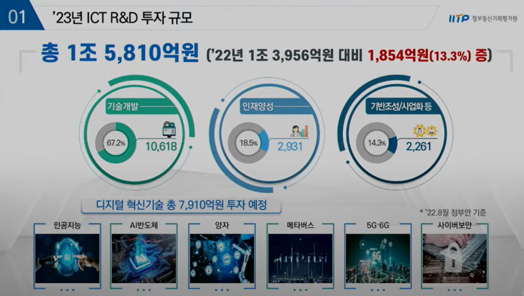 새정부의 내년도 6개 분야에 대한 구체적인 투자 계획은 문형돈 IITP기술기획단장이 ’2023년 ICT R&D 투자방향’을 주제로 한 발표로 이어졌다.