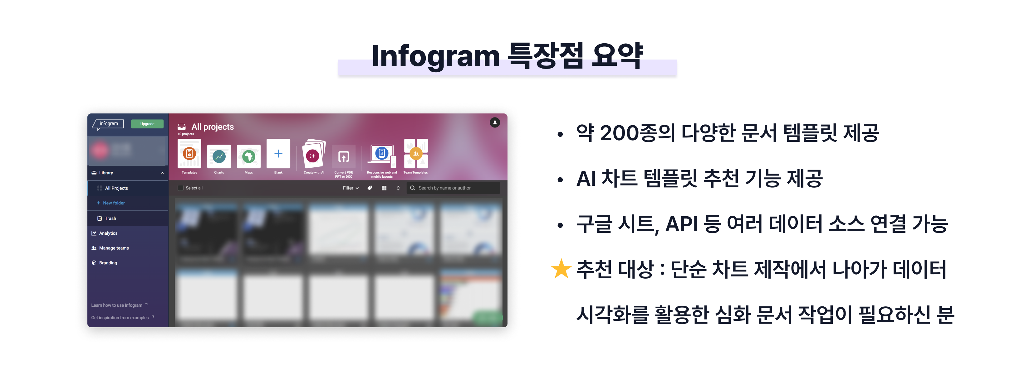 3. 차트를 활용한 다양한 문서 템플릿이 필요하다면, Infogram