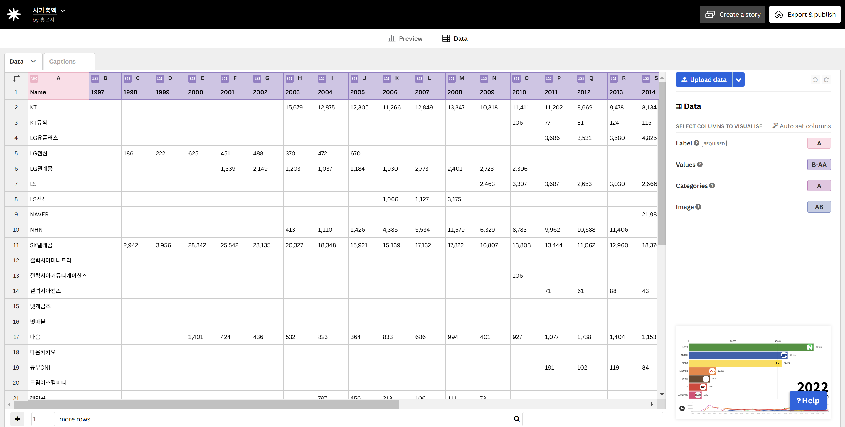 Flourish의 데이터 수정 화면 (출처: Flourish)